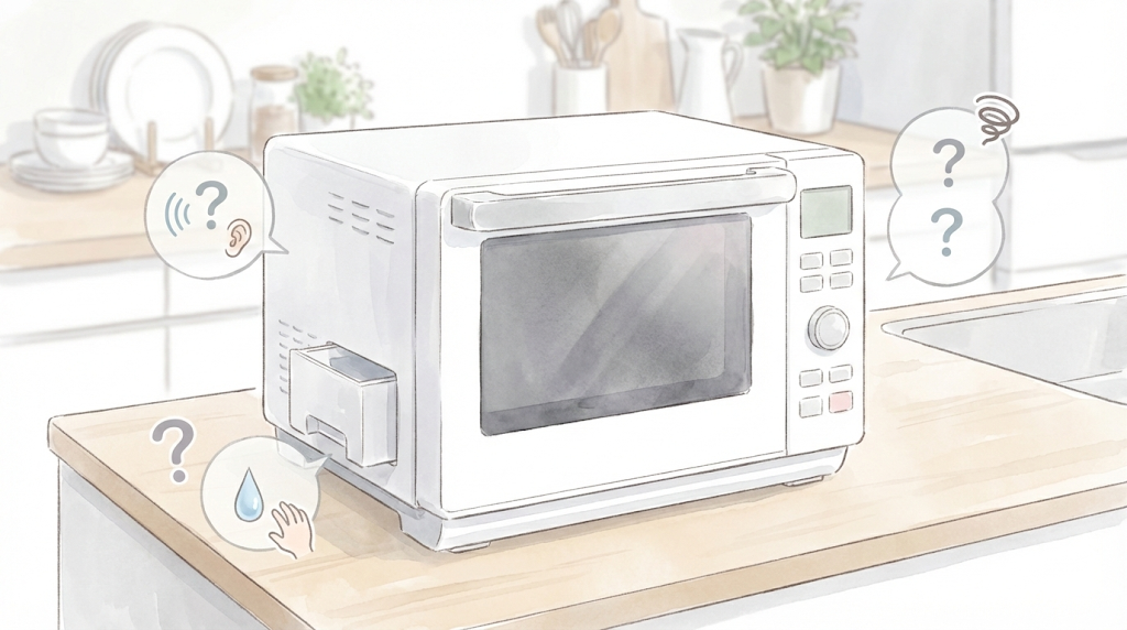KMO-FJ50Yを購入して後悔する可能性がある最大の弱点は、「オート温めのムラ(クセ)」と「使用後の冷却ファンの音」です。